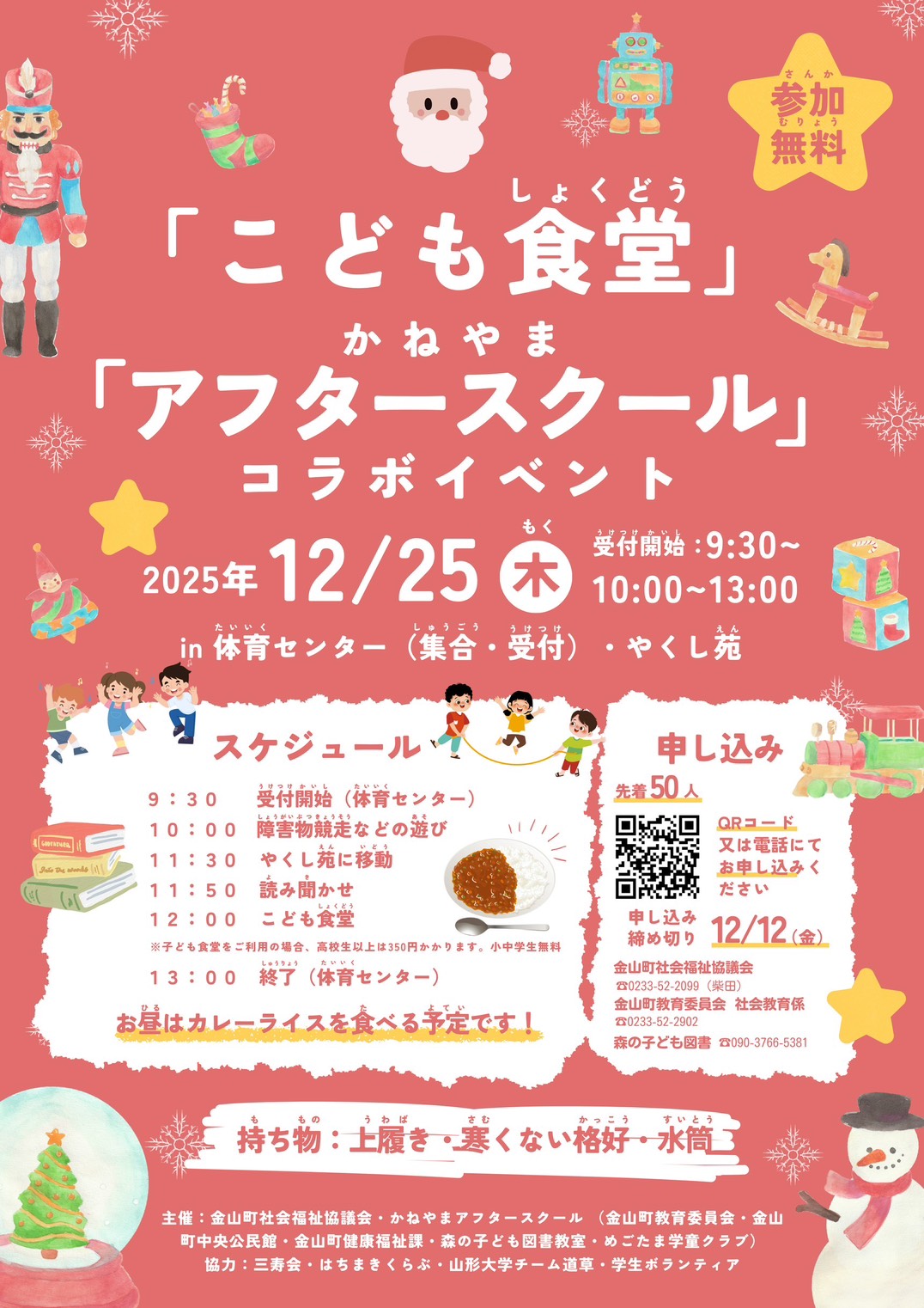 クリスマス開催となる今回は、「かねやまアフタースクール」との共催として、