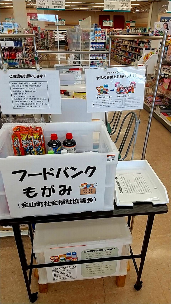 当会では令和4年度よりフードバンク活動を実施しており、現在役場、農村環境改善センター、ファミリーマート金山店・新庄昭和店・新庄上小月野店、マックスバリュ新庄店にフードボックスを設置しております。ご家庭で余っている食品等(レトルト食品や缶詰など)がございましたら、是非ご協力をお願いいたします。